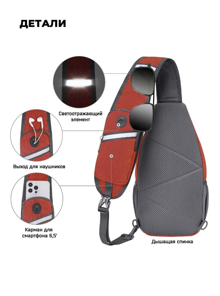 Эргономичный однолямочный рюкзак-слинг с карманом для смартфона.