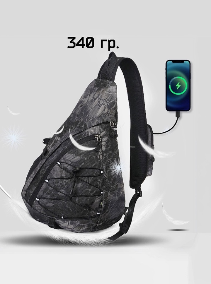 Функциональный однолямочный рюкзак с карманом для смартфона. Удобная анатомическая форма в виде треугольника очень удобна для однолямочного типа ношения рюкзака.