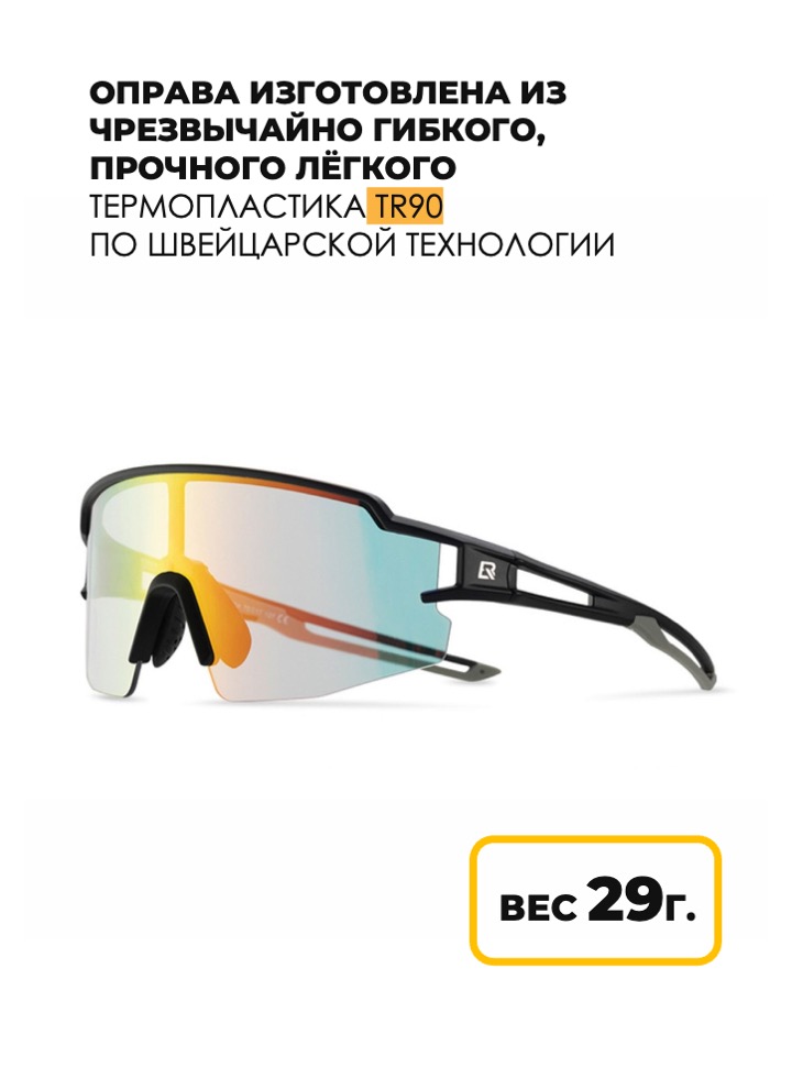 • фотохромная линза автоматически меняет затемнение в зависимости от условий освещения. Линза может быть абсолютно прозрачной во время вечернего или ночного катания на велосипеде, но на ярком солнце затемняется до категории 2.