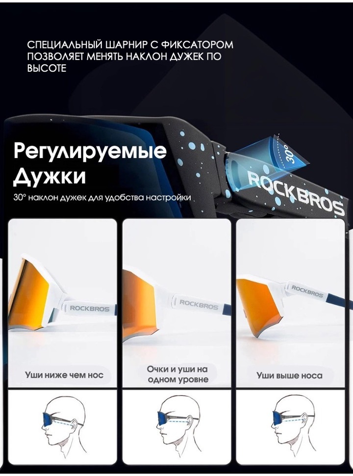 • Уникальная система регулировки дужек. Специальный шарнир с фиксатором позволяет менять наклон дужек по высоте.