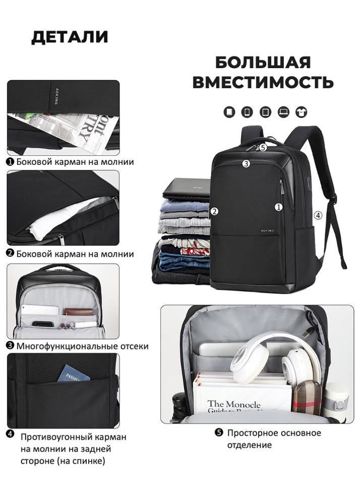 • Карман антивор в спинке рюкзака.