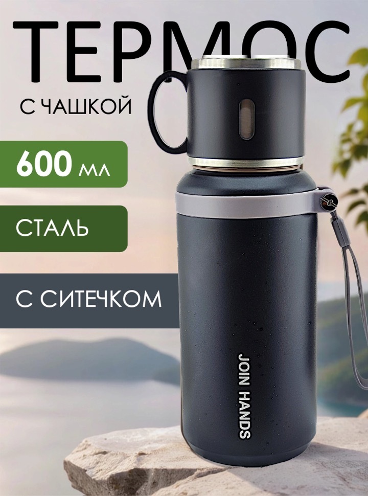 Компактный городской термос с универсальной крышкой-чашкой. Подходит для холодных или горячих напитков. Термос оснащен удобной чашкой с ручкой.