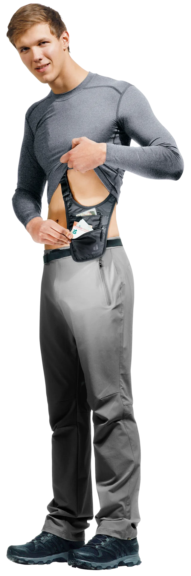 В мягкой, элегантной кобуре все ценные и важные вещи можно спрятать и носить близко к телу под рубашкой или небрежно на поясе. Два кармана на молнии и внутренний сетчатый карман обеспечивают надежное хранение денег и документов.