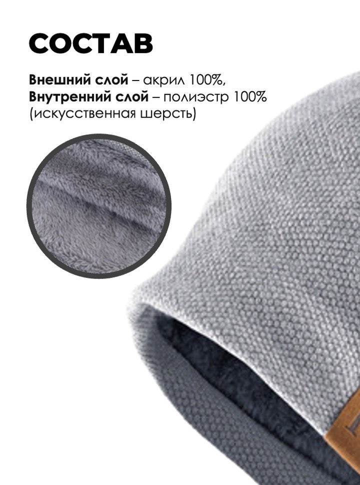 Удлиненная шапка из тонкой акриловой пряжи с подкладкой из мягкой искусственной шерсти.