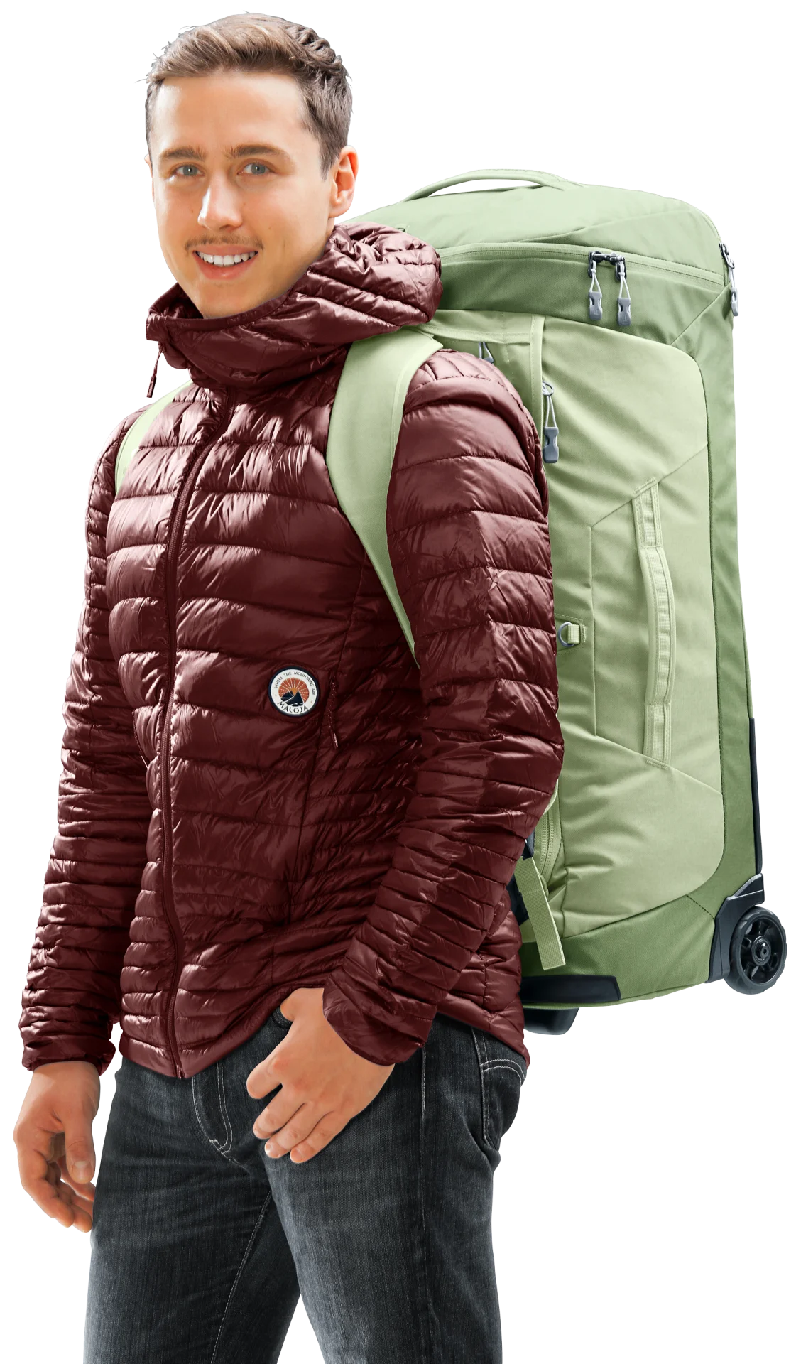 Эта дорожная сумка на колесиках изготовлена из 50% переработанной основной ткани, Сумка идеальная для небольших поездок. Легко маневрировать и с убирающимися плечевыми ремнями в стиле рюкзака, в ней достаточно места для всего вашего снаряжения. С надежной запирающейся молнией на основном отделении, просторными внутренними отделениями и внешним карманом эта сумка на колесиках хорошо организована. Изготовлена из прочного водоотталкивающего материала TPU, который защищает содержимое от грязи и влаги.