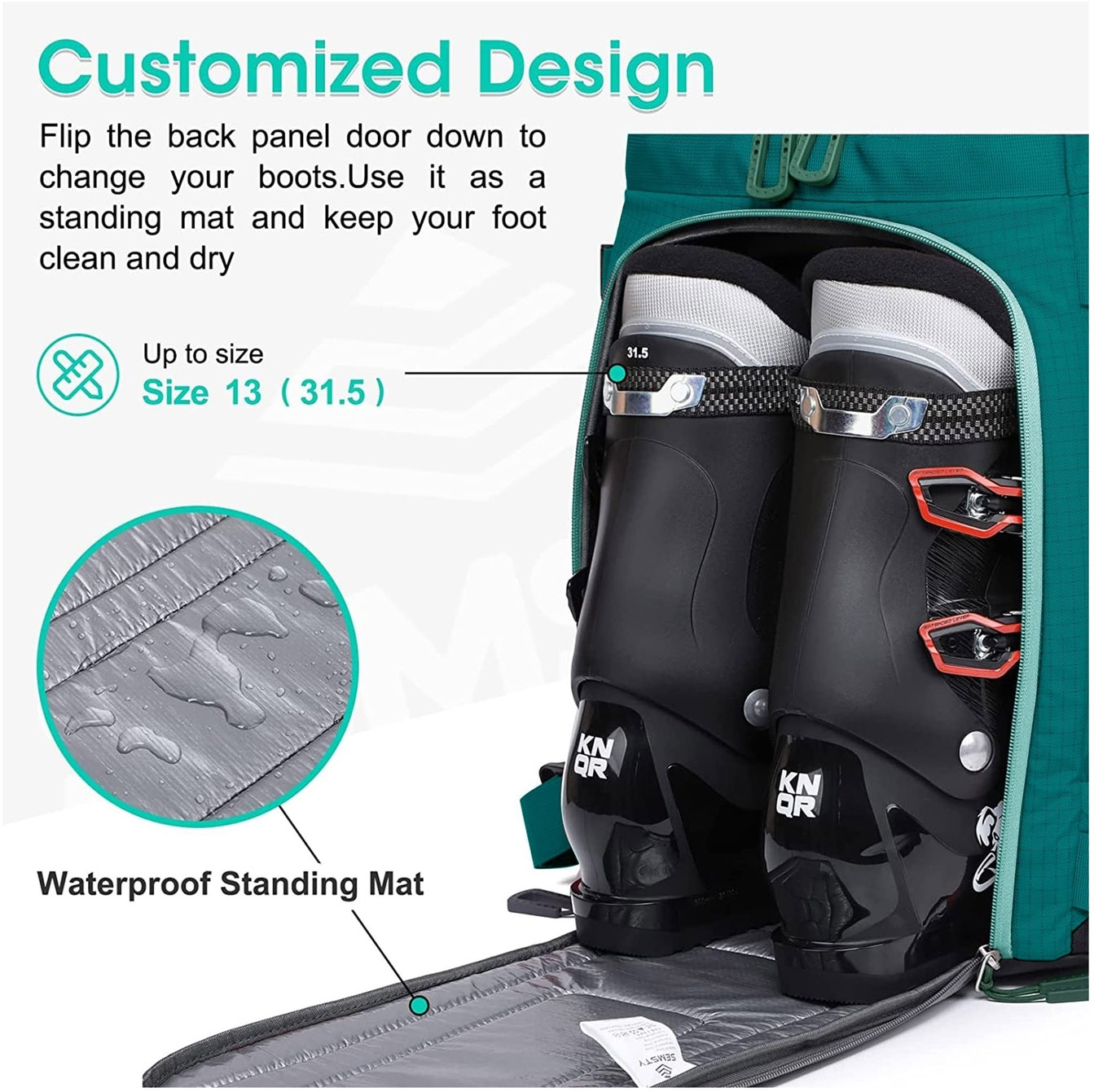 Функциональный рюкзак для горнолыжных ботинок. В нем достаточно места, чтобы уложить все горнолыжные аксессуары. В ней поместится шлем, очки, перчатки и другие аксессуары — и всё будет аккуратно разложено.