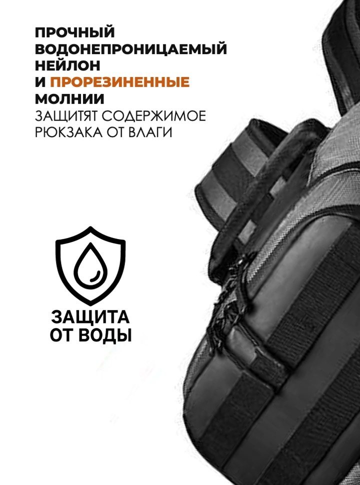 • Прочный водонепроницаемый нейлон и прорезиненные молнии защитят содержимое рюкзака от влаги.