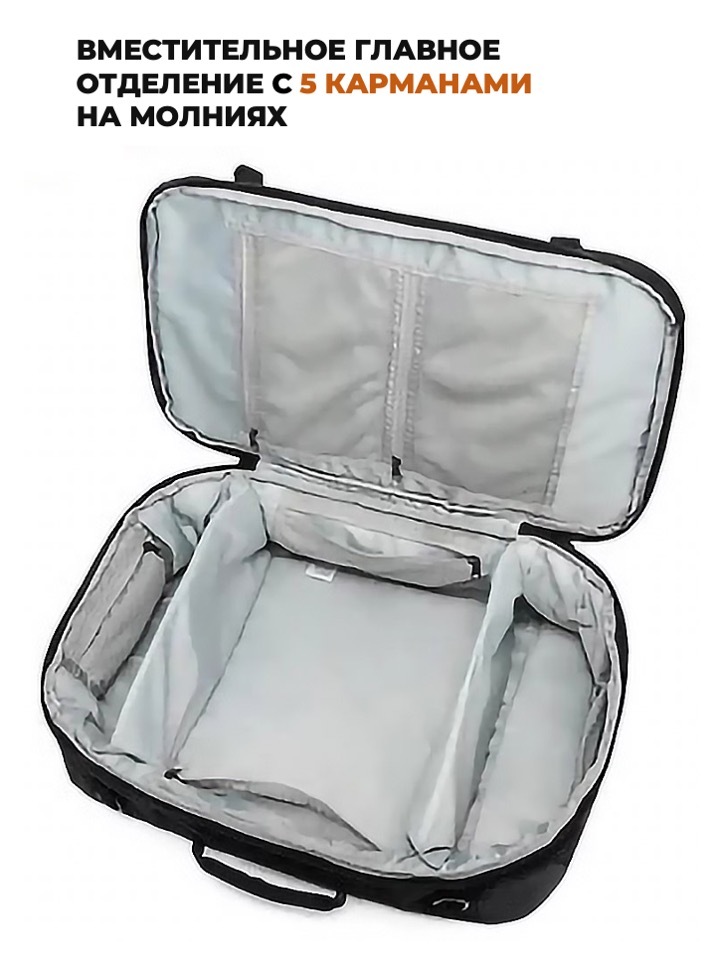 • Вместительное главное отделение с 5 карманами на молниях, меньшего размера.
