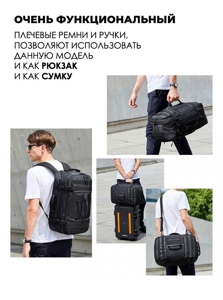 • Сумка-рюкзак оборудована карманами на молниях на передней и боковых частях.