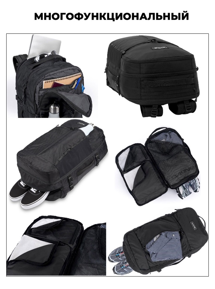 Универсальный рюкзак для путешествий в ручную кладь. Двухуровневое основное отделение с отсеком для обуви и защитными карманами для гаджетов, позволяет взять с собой все самое необходимое, сесть в самолет или поезд и отправится в незабываемое приключение.