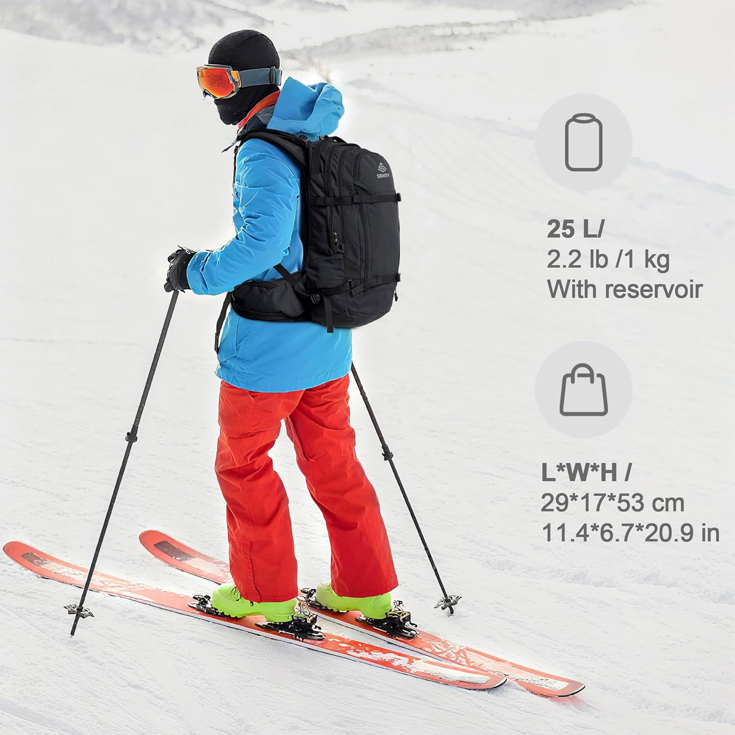Универсальный рюкзак для горнолыжников и сноубордистов сочетает удобство и надёжность. В нём есть карман для очков на флисовой подкладке, отсек для лопаты и место под гидратор. Трубка для питья скрыта в лямке, защищая от непогоды. Предусмотрены крепления для лыж и сноуборда, съёмный подвес для шлема и поясной ремень. Прочный водонепроницаемый материал гарантирует долговечность.