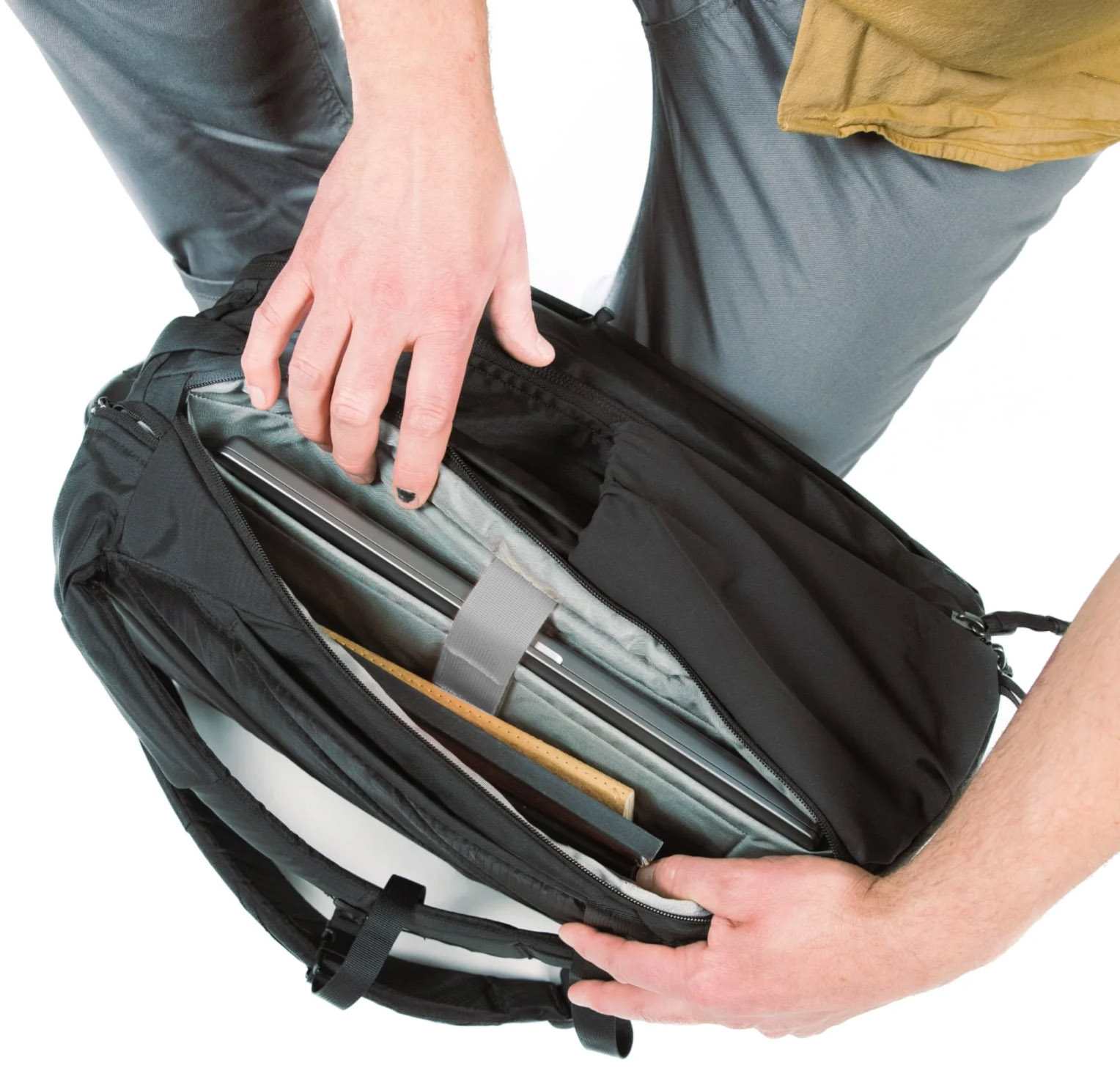 • Раскрытие основного отделения на 180°, чтобы вы могли с комфортом упаковать или выложить свои вещи.