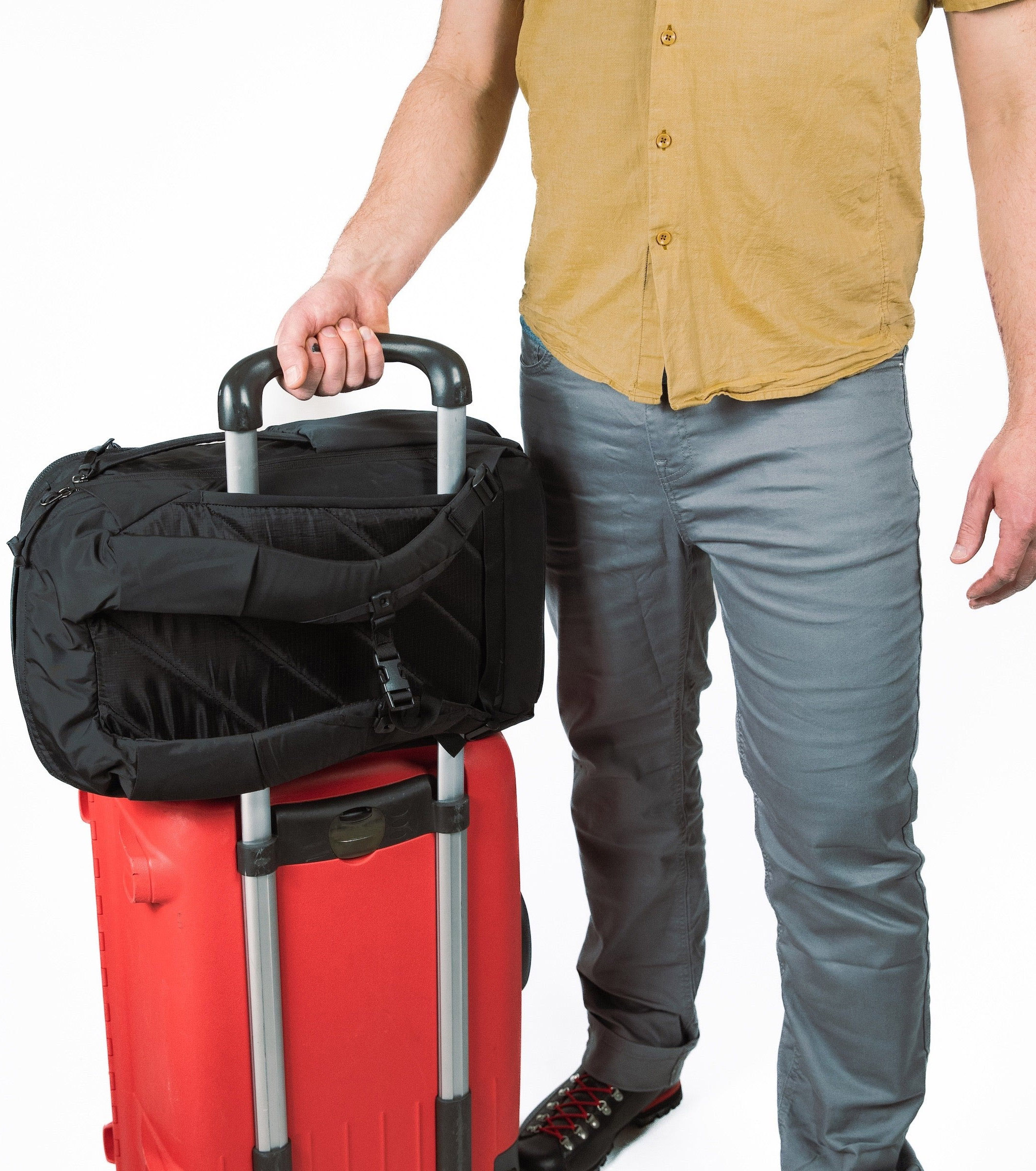 • Специальная панель для крепления рюкзака к ручке чемодана.