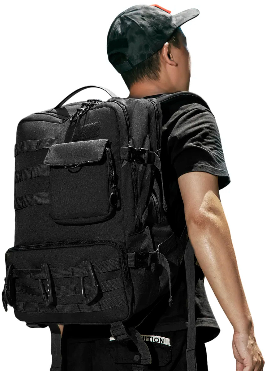 Вместительный тактический рюкзак для путешествий, походов и приключений. Удобная внешняя система крепления, лёгкий и комфортный в ношении.