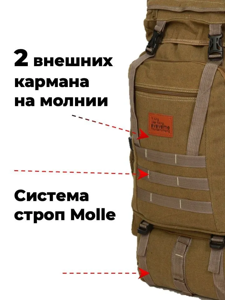 Тактический походный рюкзак из прочной парусины с большим основным отделением, подойдет для долговременных поездок или командировок.