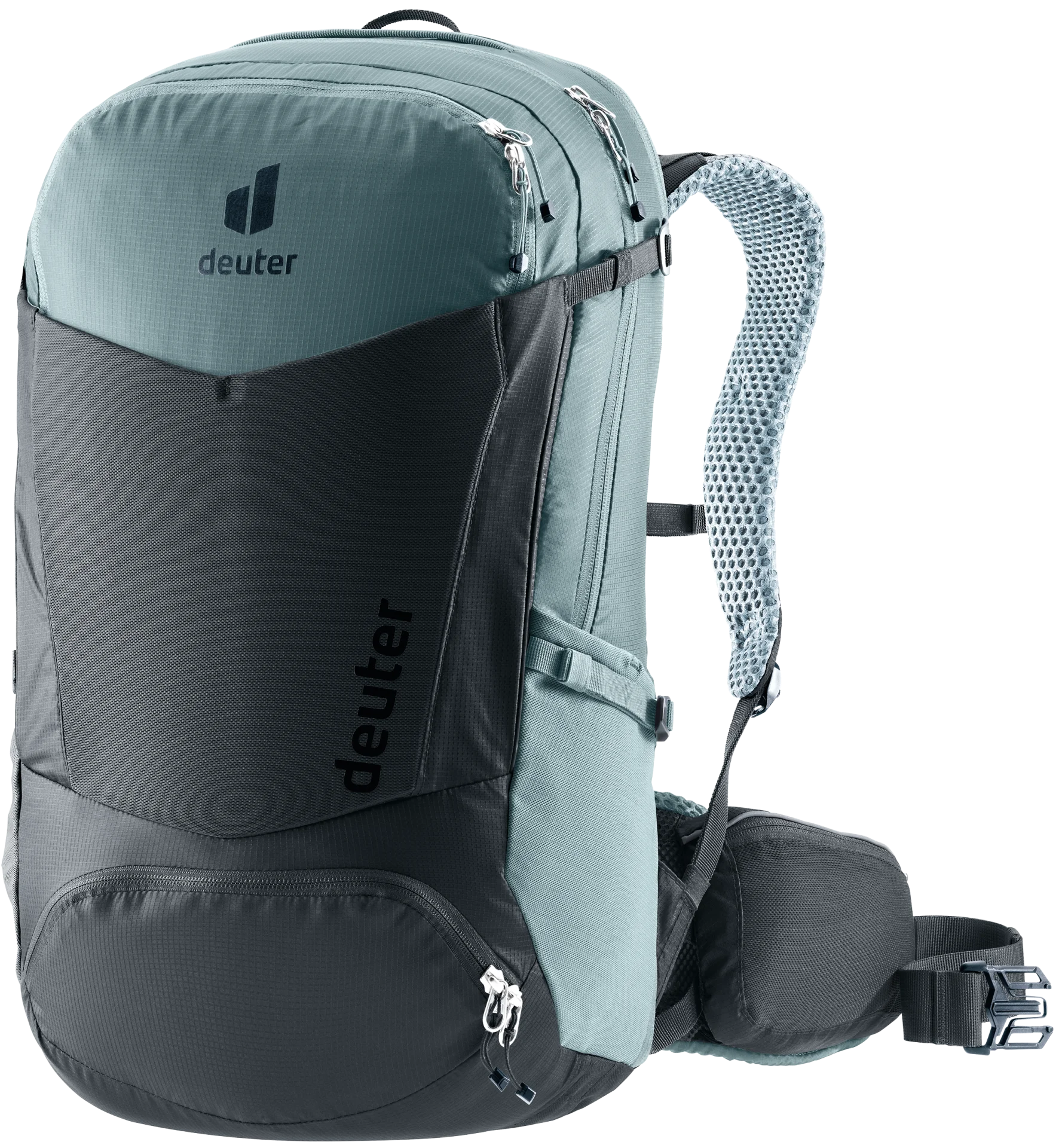 • Регулируемый в двух направлениях нагрудный ремень