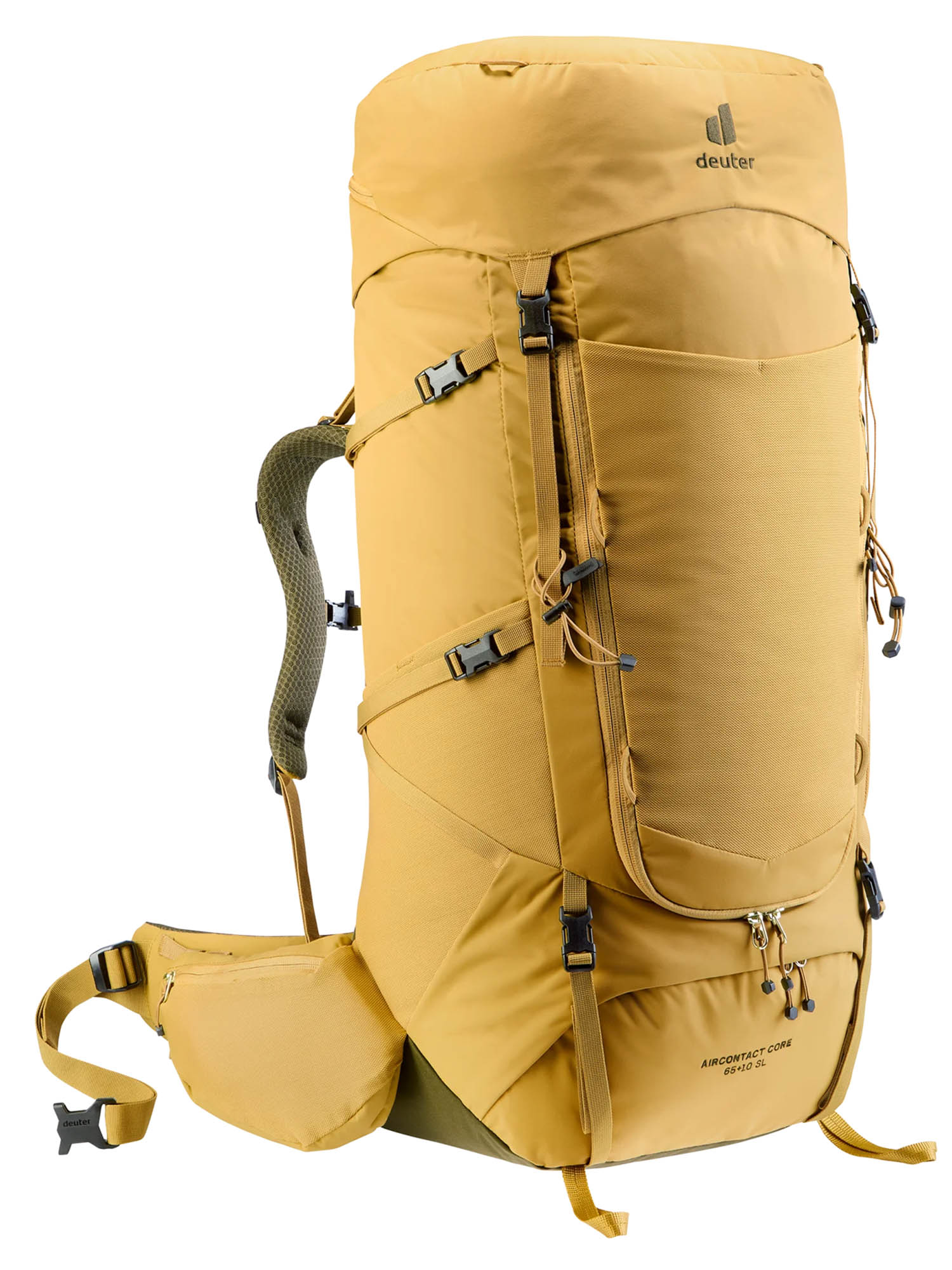 Deuter Aircontact Core 65+10 SL - туристический рюкзак из последнего поколения легендарной серии рюкзаков Aircontact. Серия Aircontact разработана для многодневного туризма и оснащена всем необходимым, что может вам пригодиться в любом походе. Рюкзак имеет несколько доступов внутрь: стандартный клапан, нижний на молнии со входом в нижнее отделение и центральный J-образный. Такая конструкция позволяет вам без труда достать любые вещи из рюкзака, не перебирая все содержимое.