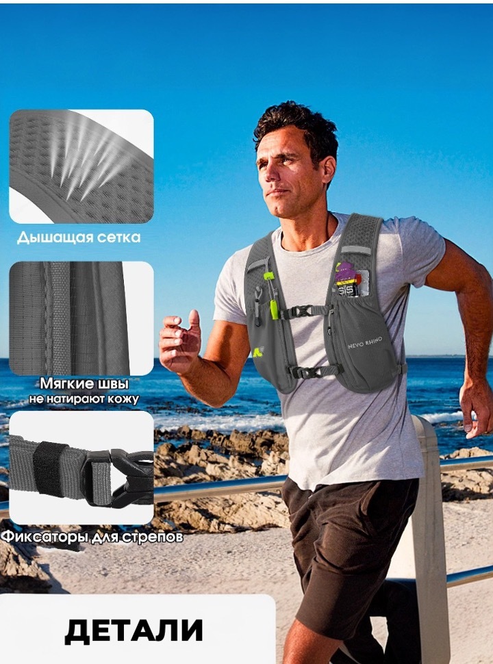 Легкий беговой рюкзак-жилет с питьевой системой в комплекте.