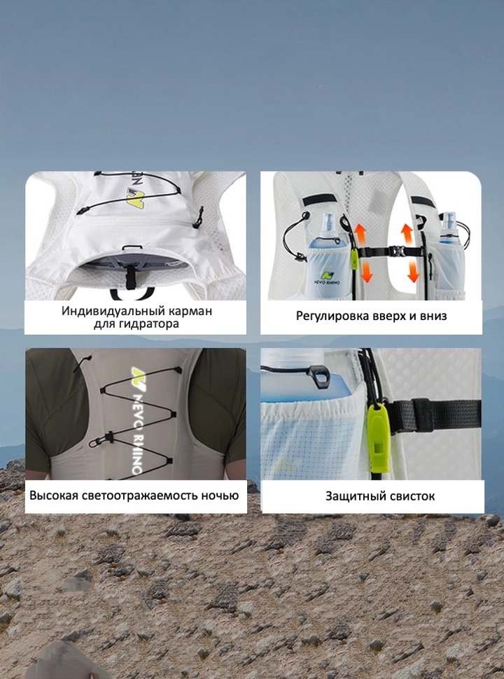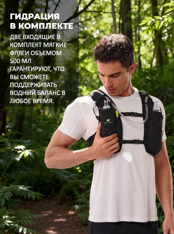 Технологичный профессиональный рюкзак-жилет для бега с флягами в комплекте.