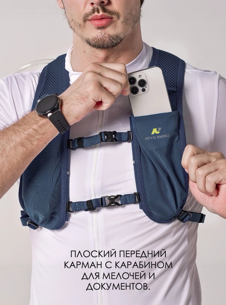 • Широкие вентилируемые лямки с эластичными сетчатыми карманами. Подходят для мягких питьевых фляг или смартфона.