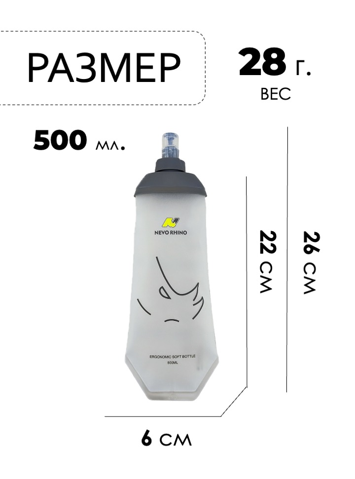 Легкая мягкая фляга для беговых рюкзаков, жилетов или поясов.