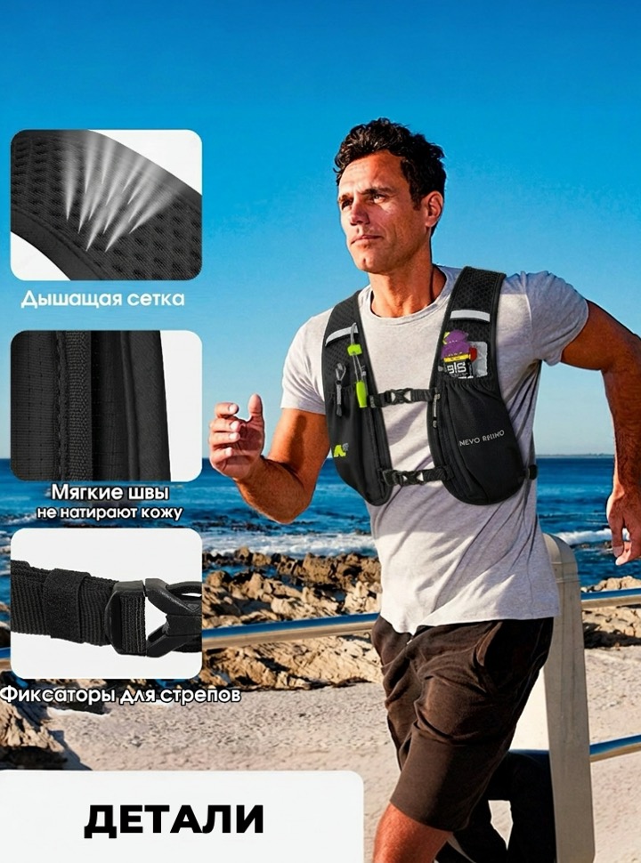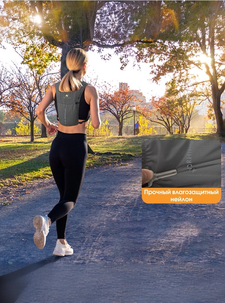 Легкий беговой рюкзак-жилет с питьевой системой в комплекте.