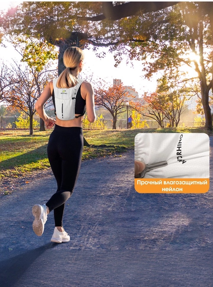 Легкий беговой рюкзак-жилет с питьевой системой в комплекте.