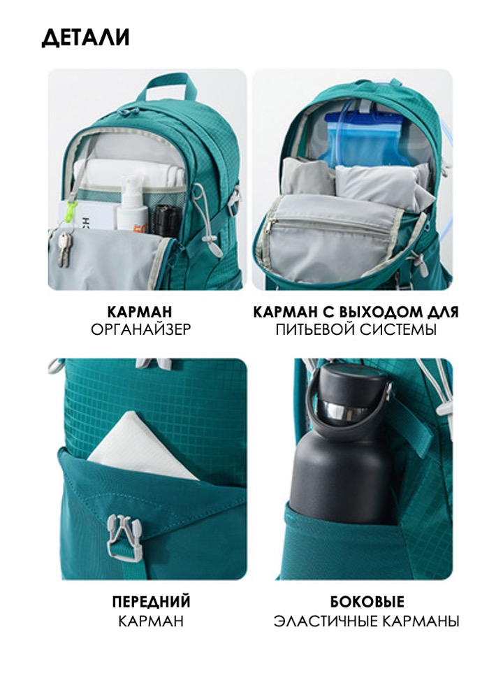 • Эластичные сетчатые карманы по бокам (для фляги или зонта)