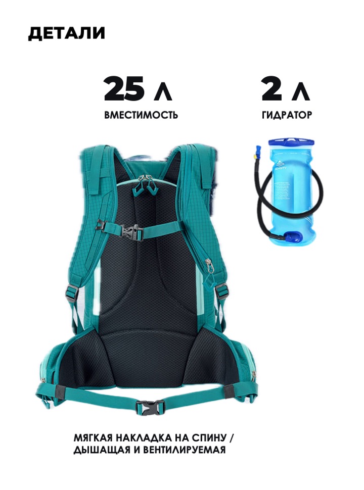 • доступ к основному отделению сзади и место для 2–3-литрового гидратора