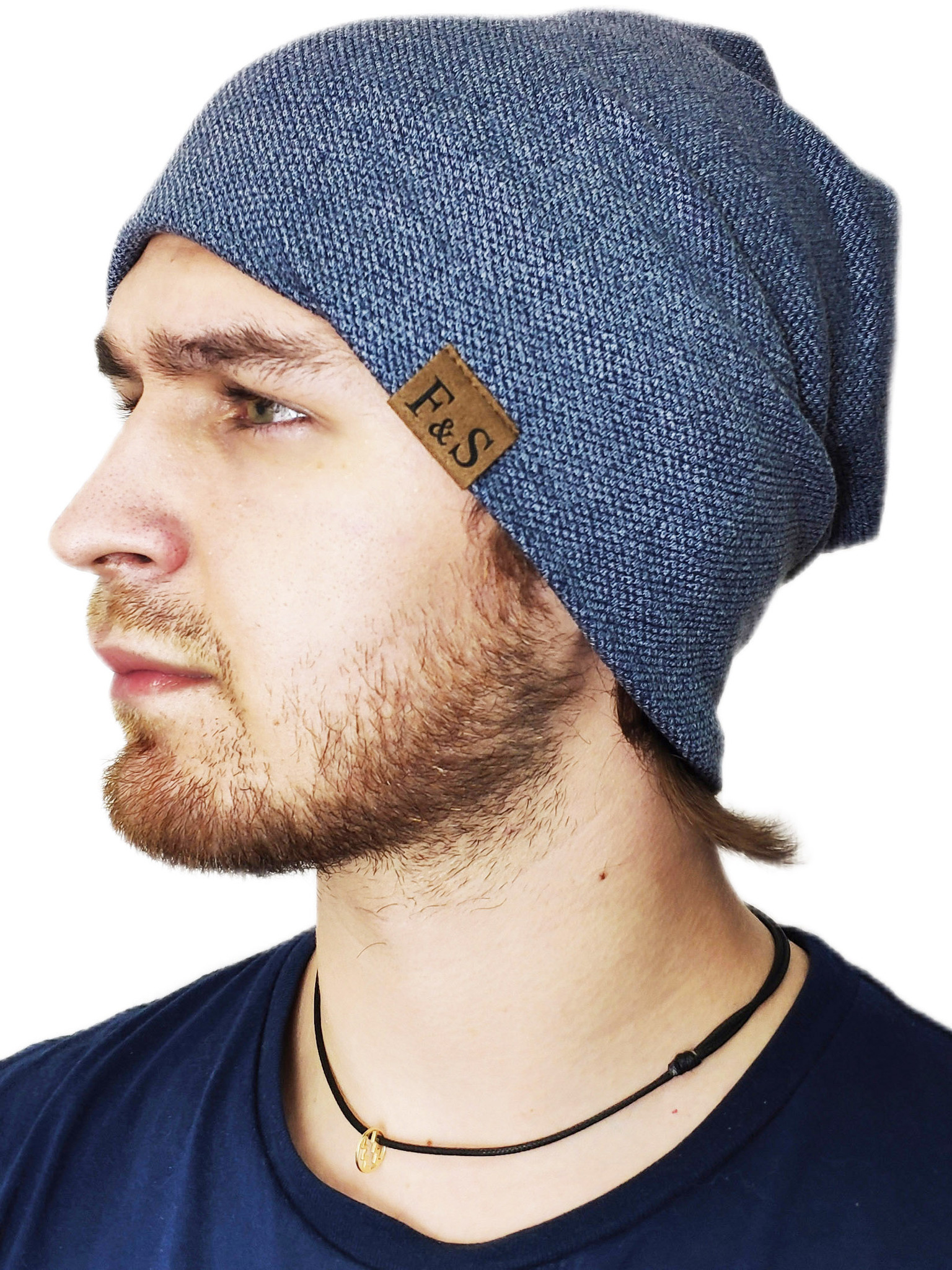 Шапка длинная с подкладкой из флиса Skully YZM-760-F_navy
