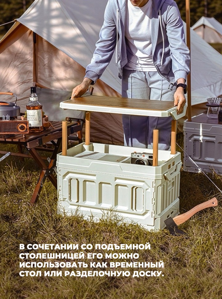 • В складном ящике большой емкости можно хранить различные походные принадлежности, книги и т.д.