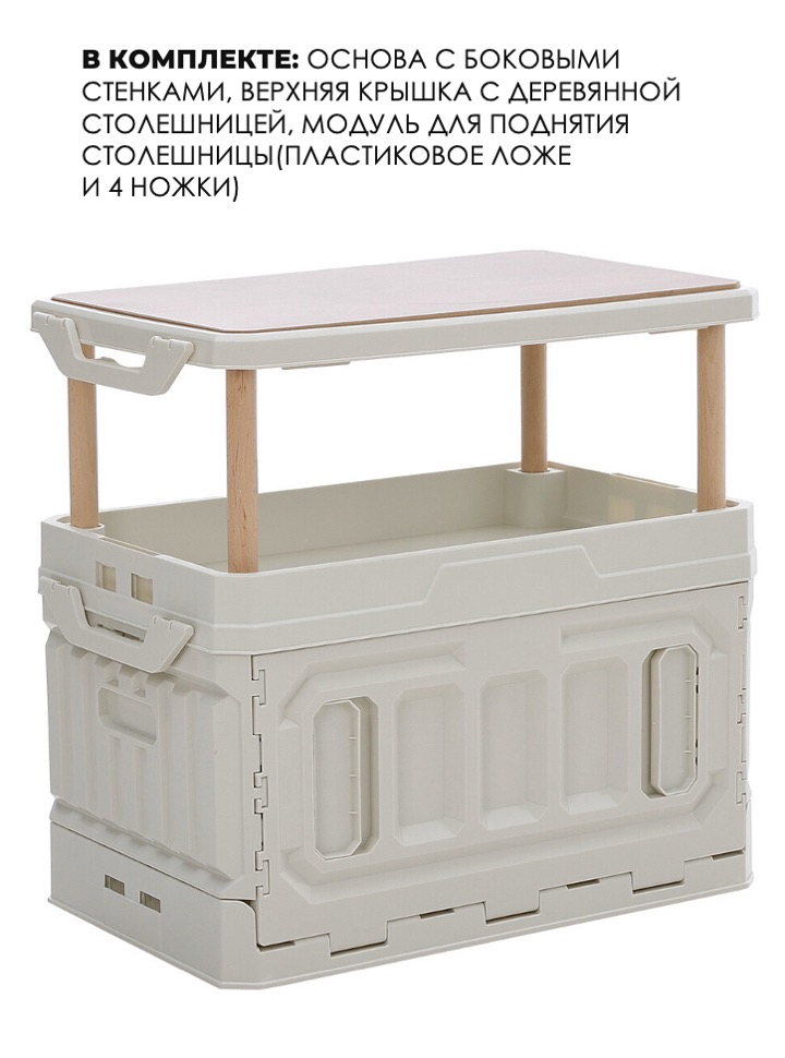 Складной кемпинговый ящик Skully Table Wood lid 60л (58х36х56) white