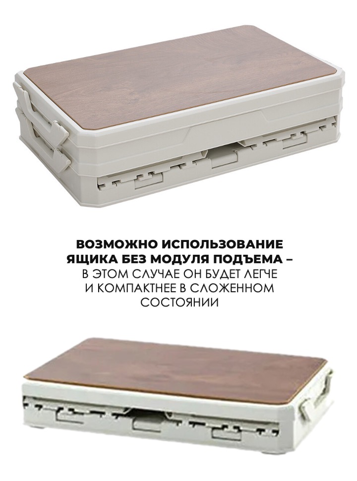 • Возможно использование ящика без модуля подъема - в этом случае он будет легче и компактнее в сложенном состоянии.