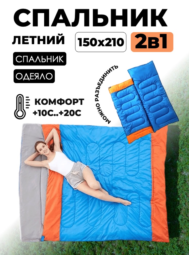 Летний двуспальный спальник-одеяло с подголовником. Комфортный объемный утеплитель, который легко сжимается.