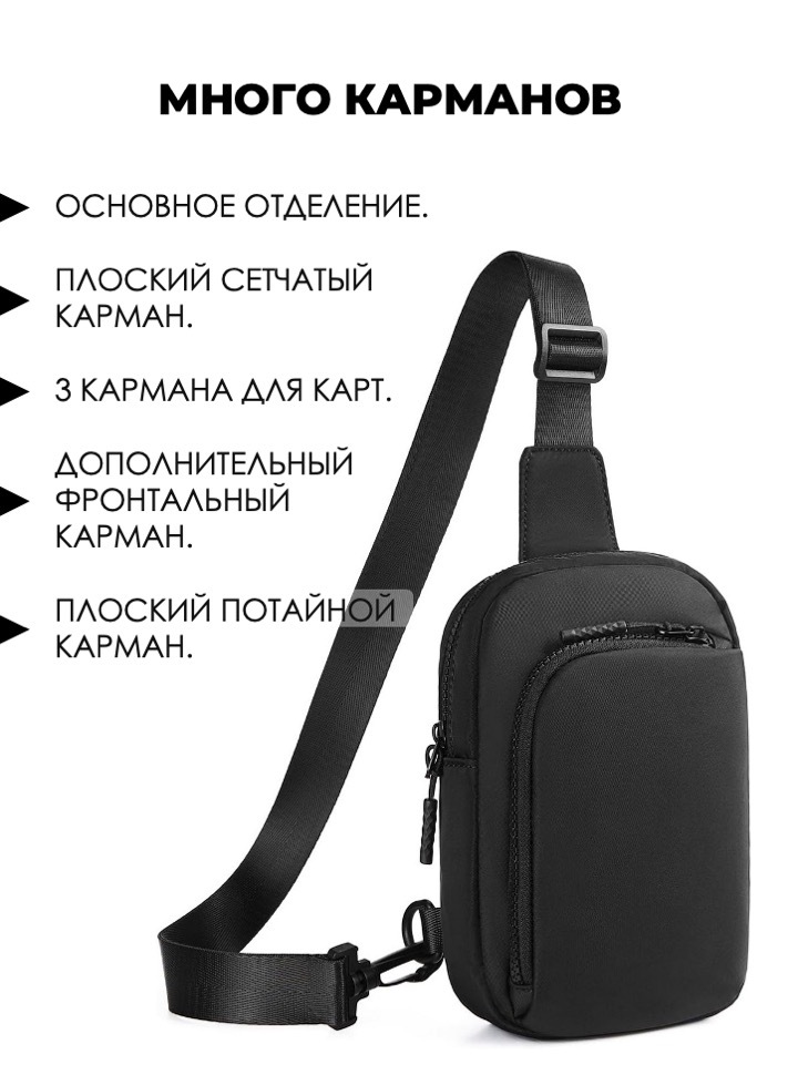 Легкая функциональная сумка-слинг для документов, телефона, кошелька и ключей. Удобное расположение молний и 3 кармана позволят быстро распределить ваши аксессуары и иметь к ним быстрый доступ. Сумку можно носить под верхней одеждой.