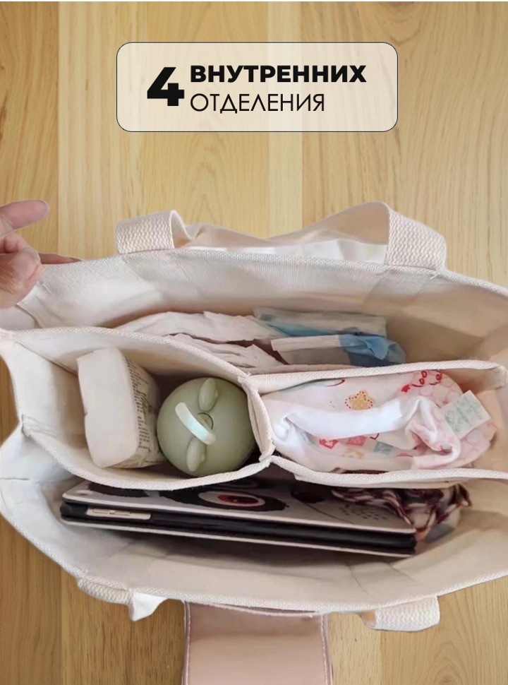 Сумка органайзер выполнена из стильного материала, напоминающего холст и имеет множество удобных отделений и карманов для организации ваших вещей. Удобна для пляжа - положите туда кремы, бальзамы, бутылку с водой и любимую книгу. Прогулок в парке или рисования - поместите туда блокнот для эскизов, карандаши, фломастеры и термостакан. Или используйте сумку для прогулок с маленьким ребенком. Можно положить банки с сухим молоком, детские салфетки, бутылочки для кормления, термос.