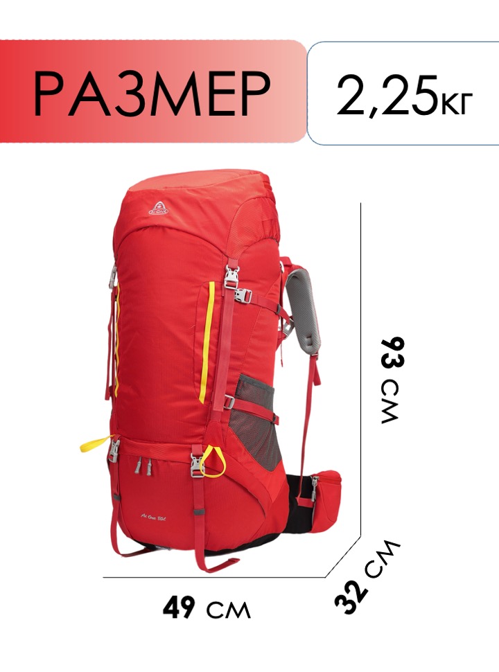 Туристический рюкзак с мощным поясным ремнем, жесткой и комфортной подвесной системой и чехлом от дождя.