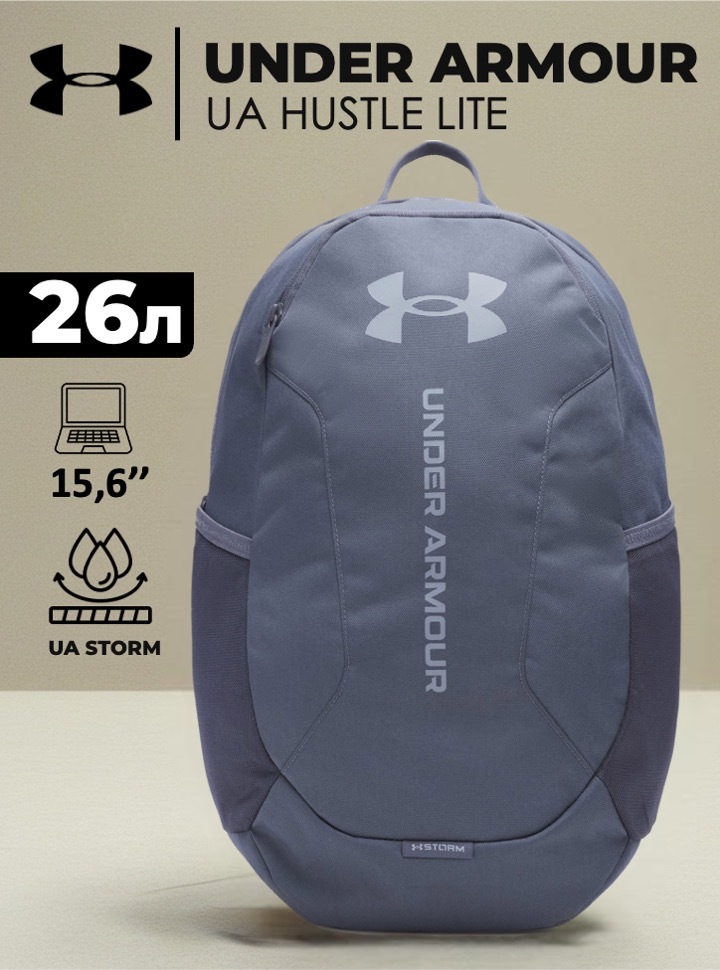 Рюкзак Under Armour UA Hustle Lite. Он защищен для моросящего дождя, прочный и удобный. В нем есть все необходимые карманы для хранения ваших вещей.