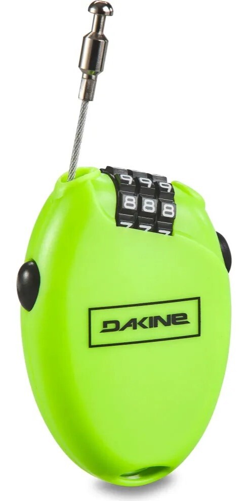 Самый маленький и легкий замок Dakine, Micro Lock. Вы устанавливаете свою собственную комбинацию на трехзначном кодовом замке, поэтому ее гораздо легче запомнить, чем комбинацию, установленную на заводе. 76-сантиметровый втягивающийся трос дает вам такое же спокойствие при креплении сноуборда или лыж к багажнику на крыше или к чему либо другому, например у кафе на склоне.