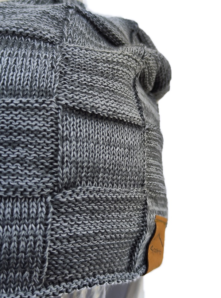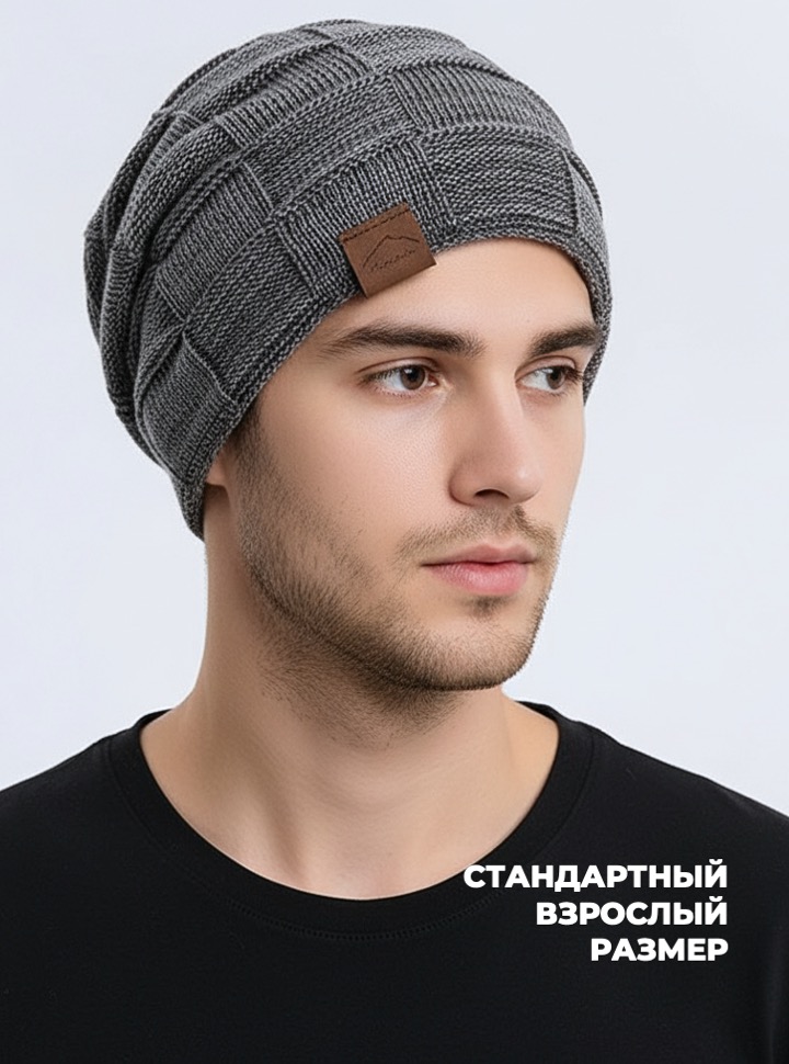 Удлиненная шапка из фактурной акриловой пряжи с полным внутренним утеплением из ворсистого флиса.