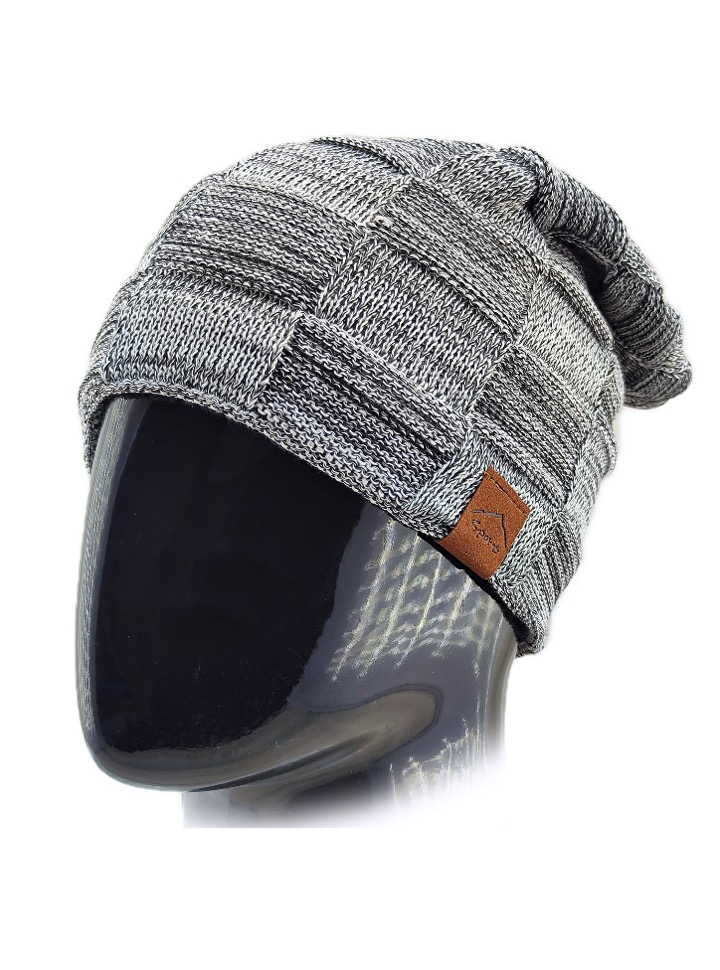 Удлиненная шапка из фактурной акриловой пряжи с полным внутренним утеплением из ворсистого флиса.